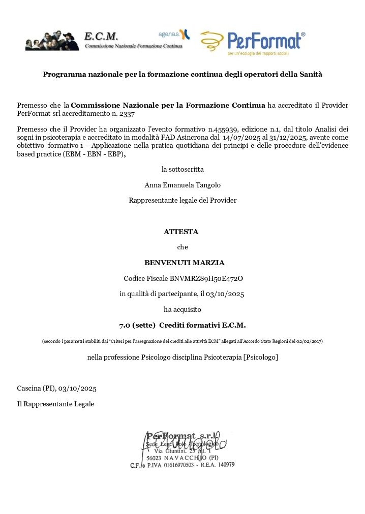 Il mio approccio è prevalentemente psicodinamico, integrato con altri modelli, perché credo che il disagio psicologico non possa essere letto da un solo punto di vista. Ogni persona porta una storia unica, e il mio lavoro consiste nel costruire, insieme, un percorso che tenga conto di questa unicità.